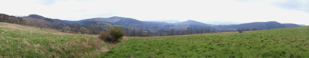 Za sztolnią ścieżka prowadzi do punktu widokowego z którego rozciąga się panorama na Południowy i Wschodni Grzbiet Gór Kaczawskich.