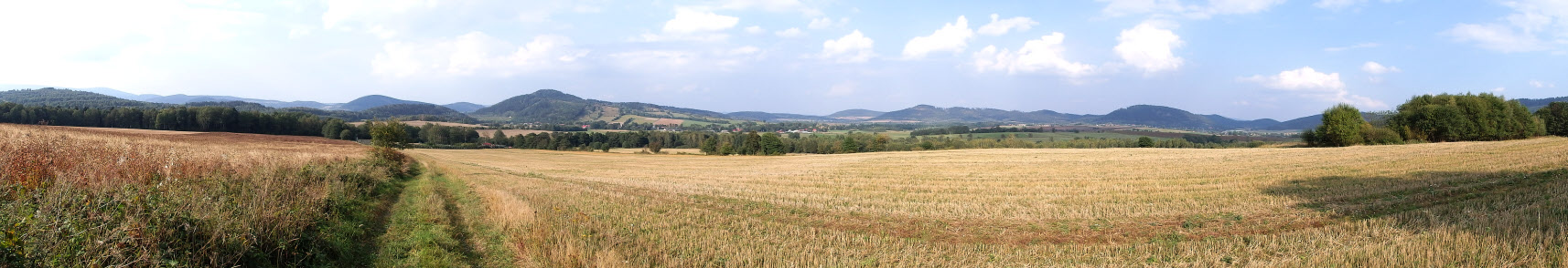 Kolejnym miejscem odpoczynku jest ławeczka na rozdrożu Horni Alberice (850 m). Schodzimy do samochodu szlakiem i przez wieś Niedamirów obok Parady (opisywałem to miejsce w poprzedniej relacji), Szczepanów i polną drogą do zielonych znaków, którymi już dochodzimy do parkingu.