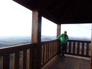 Widoczność tego dnia jest kiepska bo zapewne widoki sięgają do Karkonoszy. Z wieży schodzimy ta samą trasą do samochodu.