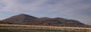 Z tarasu widokowego roztacza się panorama na Pogórze Kaczawskie z Ostrzycą (Śląska Fudżijama)