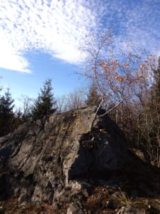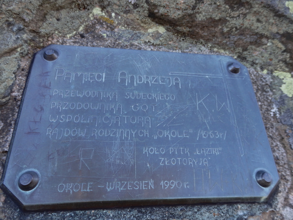 Wychodzimy na szlak. Okole (714 m) jest najwyższym szczytem Grzbietu Północnego Gór Kaczawskich. Na górę prowadzą szlaki żółty, niebieski lub niebieskie tabliczki informacyjne.