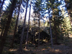 Teraz jedziemy w stronę Lubiechowa położonego w Górach Kaczawskich pod masywem Okola. Jeżeli ktoś jest pierwszy raz w tej okolicy to warto zatrzymać się we wsi. Jednym z najcenniejszych zabytków Lubiechowej jest kościół pw. św. Piotra i Pawła, w którym można zobaczyć zespół gotyckich fresków o tematyce religijnej. Na południowy zachód od świątyni wznoszą się pozostałości średniowiecznego dworu. Z racji tego, że nie była to nasza pierwsza wizyta w tych stronach przejeżdżamy wieś, za którą jest przełęcz (bez nazwy) i leśny parking.
