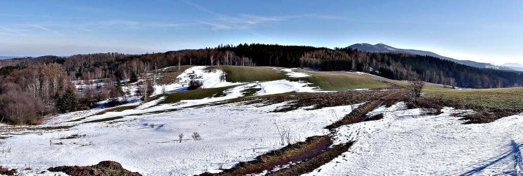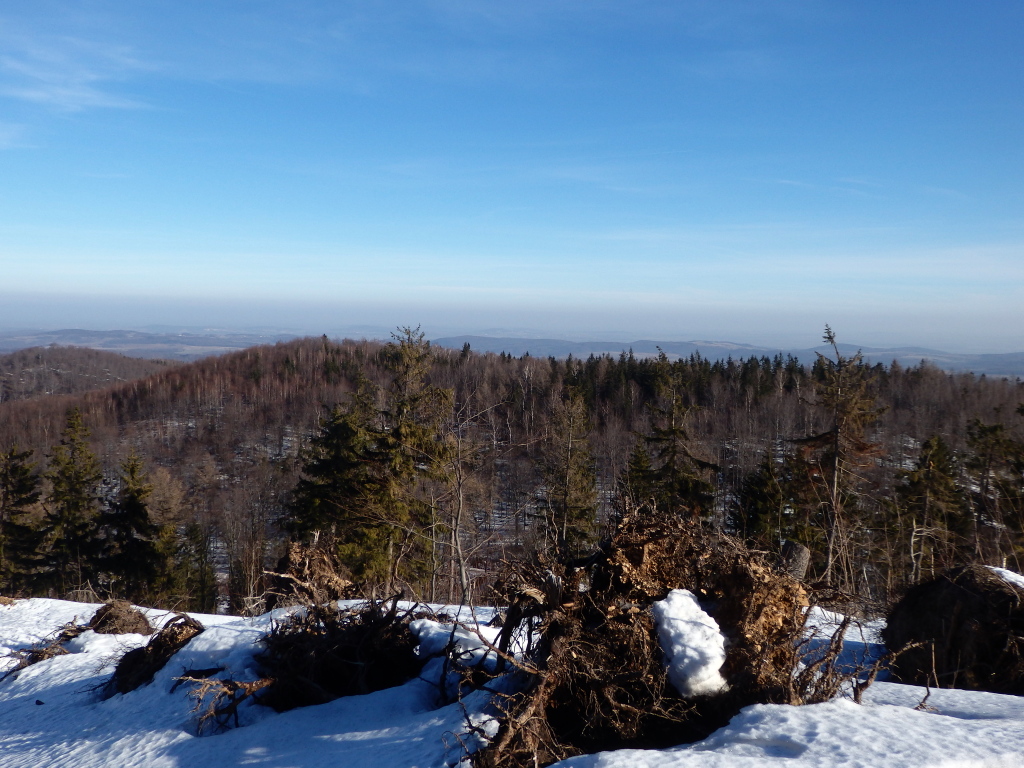 Mniej więcej w połowie drogi jest miejsce, skąd roztacza się widok na min. na Jagodnik i Czernicę,