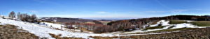 Chyba jeden z najpiękniejszych pod względem widokowym w Górach Wałbrzyskich. Majaczą przed nami wzgórza z charakterystycznym stożkowym Pasternikiem.