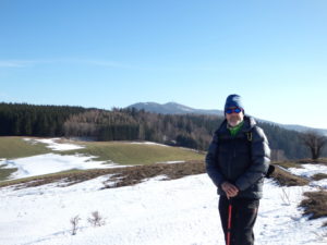Trójgarb jest to masyw trzech wierzchołków o wysokości 778m, 757m i 738m w Środkowych Sudetach w paśmie Gór Wałbrzyskich. Trochę z opóźnieniem, ale pełni wigoru wybraliśmy się z Dorotką i naszą sunią w niedzielę na wycieczkę na wspomniany Trójgarb zobaczyć jego nową atrakcję. 29. 12. 2018 r. na Trójgarbie uroczyście została otwarta nowa wieża widokowa. Warto wspomnieć, że to nie pierwsza budowla na owym szczycie. W 1882 r. na kulminacji postawiono drewnianą wieżę widokową i bufet. Fundatorem był Martin Engler włodarz restauracji „Złota Kotwica” ze Starych Bogaczowic. Po II wojnie światowej oba obiekty rozebrano. W późniejszym czasie stała też tu wieża triangulacyjna, która również została rozebrana. Na szlak wychodzimy z Gostkowa starej wsi położonej u podnóża masywu.