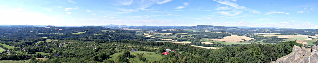 Miejsce to było polem jednej z bitew między Austrią i Prusami o władzę w tzw. Związku Niemieckim. Austria przegrała tą wojnę. Wdrapujemy się wzniesienie i podziwiamy panoramę m. in. na Karkonosze, Góry Izerskie, Hruboskalsko i okoliczne miejscowości. Zmęczeni upałem podążamy ku vyhlidce Na Krásné. Nad przepaścią szczelinową została zbudowana chata turystyczna, gdzie można zjeść posiłek i uzupełnić płyny, co z wielką przyjemnością czynimy.
