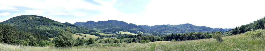 kolejne wzgórza na dzisiejszej trasie. Dalej słabo dziś widoczne Góry Wałbrzyskie z Borową na drugim planie, a na pierwszym Rybnicki Grzbiet.