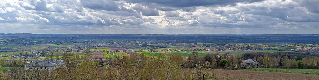 Z tarasu widokowego rozciąga się panorama na okoliczne miejscowości i wzgórza.