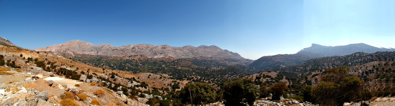 Stąd rozpoczyna się też szlak w kierunku masywu górskiego Dikte. Zakupiłem mapę, przygotowałem trasę uwzględniając drogę asfaltową, (przypominam wymóg wypożyczalni aut) znalazłem nieduży parking i wszystko na nic. Wąską drogę przez płaskowyż Lasithi zablokowali swoimi ciężarówkami rolnicy. Zaczęły się zbiory warzyw. Ni jak nie mogliśmy ich minąć. Kazali nam czekać, około południa droga miała być wolna. Zdecydowanie za późno żeby iść w góry, słońce by nas wykończyło.