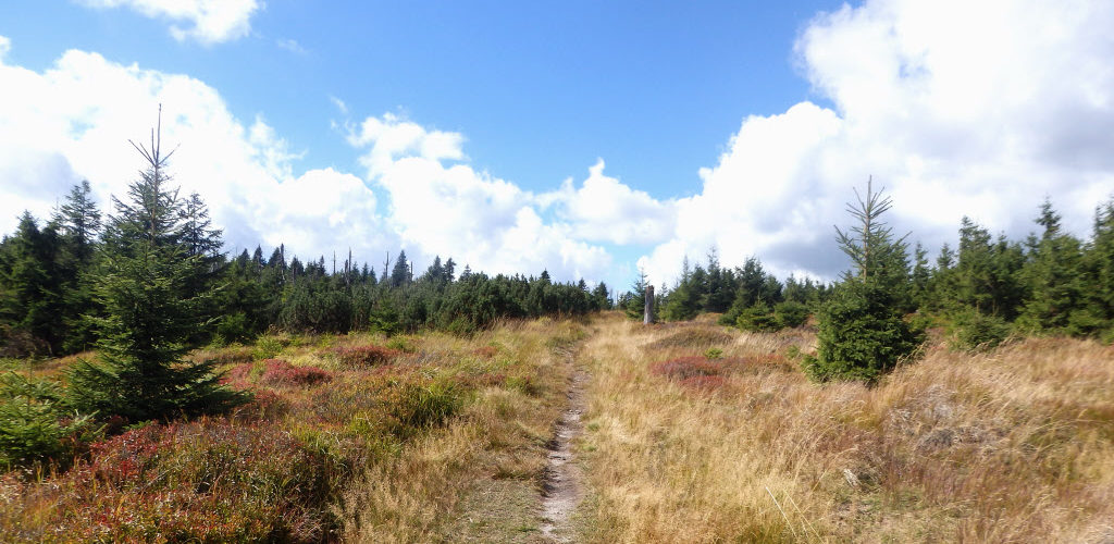 Otwarcie dla turystów tzw. Worka Jakuszyckiego poskutkowało wyznaczeniem kilku nowych szlaków, z których najpopularniejszy, znakowany kolorem czerwonym, prowadzi z Jakuszyc przez schronisko turystyczne Orle do Chatki Górzystów na Izerskiej Hali. Oba obiekty znane są z doskonałej, turystycznej atmosfery panującej w tych schroniskach. W Chatce Górzystów nie ma prądu, toaleta jest na zewnątrz, a wodę trzeba przynieść z płynącego opodal strumienia. Herbata ugotowana na niej smakuje w sposób wyjątkowy. Polecam całodzienną wyprawę w Góry Izerskie, ze zdobyciem Wysokiej Kopy. Z uzdrowiska Świeradów- Zdrój szlak czerwony prowadzi przez miasto potem drogą asfaltową, następnie duktem leśnym dochodzi do schroniska „Na Stoku Izerskim”. Dalej szlak czerwony prowadzi na Polanę Izerską. W tym miejscu szlak czerwony przecina się z szlakiem niebieskim, który prowadzi do schroniska Chatka Górzystów, my podążamy dalej szlakiem czerwonym przez Podmokłą i Szerzawą szlak prowadzi do mokrej Przełęczy i dalej do Rozdroża po Kopą. Od Rozdroża szlak prowadzi do góry i wchodzi na Sine Skałki, z których rozciąga się piękny widok na Wysoką Kopę, Góry Izerskie i Polanę Jakuszycką. Szlak nie prowadzi na szczyt Wysokiej Kopy (należy zejść ze szlaku). Dochodzimy do drogi gdzie dochodzą dwa szlaki zielony i niebieski. Obchodzimy kopalnię Kwarcu „Stanisław” i idziemy dalej szlakiem do Rozdroża pod Zwaliskiem, tam szlak zielony odchodzi w lewo, a niebieski w prawo, my idziemy dalej szlakiem czerwonym na Wysoki Kamień, gdzie jest w budowie schronisko. Dalej szlak schodzi do Szklarskiej Poręby na przystanek PKS. Przejście jest długie, ale nie wyczerpujące. Szlak z pięknymi widokami.