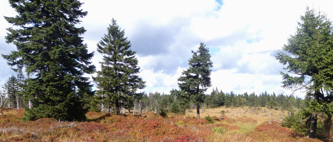 Elementem wyróżniającym florę Gór Izerskich spośród innych pasm sudeckich są torfowiska, rozpościerające się po obu stronach granicy. Mają one po kilka tysięcy lat, a wiek najstarszych z nich szacuje się nawet na 10 tysięcy lat. Na Hali Izerskiej utworzony został rezerwat przyrody „ Torfowiska Doliny Izery”, który razem z przylegającym doń rezerwatem „Raseliniste Jizery” po czeskiej stronie, tworzy największy tego typu obszar w Sudetach. Rośnie tutaj wiele ciekawych roślin, np. brzoza karłowata, która występuje w tundrze dalekiej północy, a w Góry Izerskie została przyniesiona przez lodowiec. Zadziwiający jak na tą wysokość jest klimat Izerskiej Hali ( leży ona na wysokości 840 – 880 m n.p.m.) charakteryzujący się podobnymi współczynnikami, jak leżące około 500 m wyżej karkonoskie piętro subalpejskie.